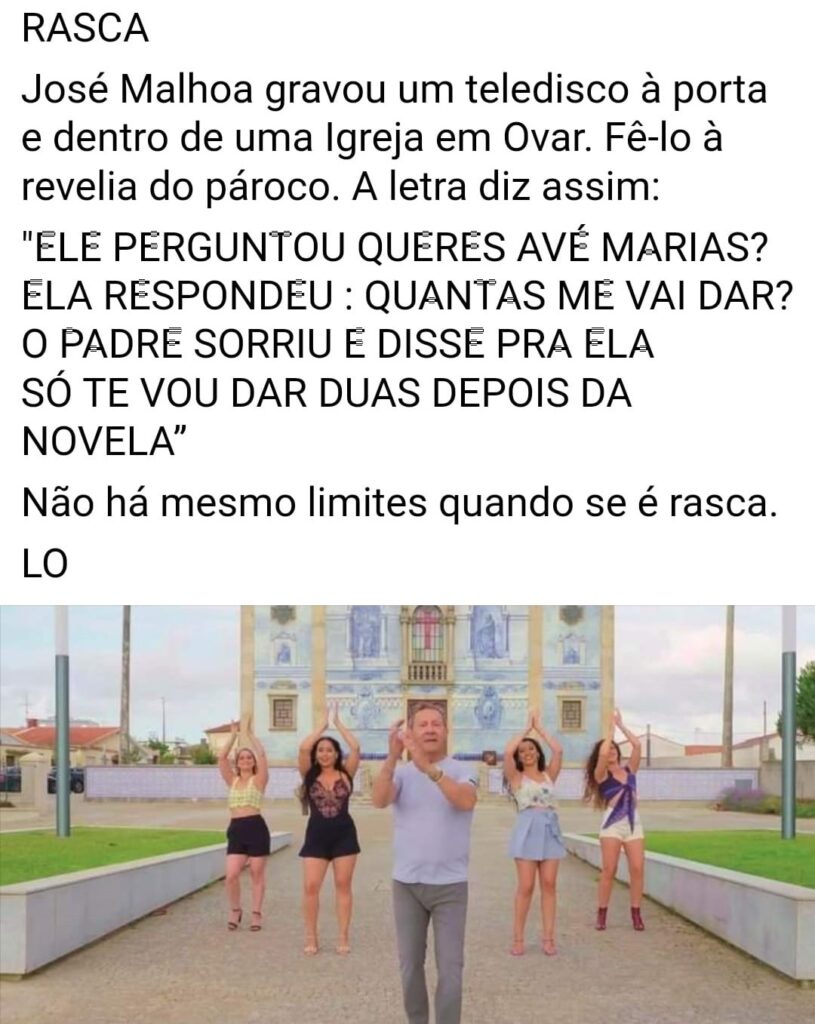 A Paróquia de Cortegaça acusa o cantor de ofensa e afirma que o mesmo gravou sem autorização o videocllipe de ” Ela queria três…” no exterior e também no interior do espaço religioso. José Malhoa garante que sua editora pediu obteve autorização de um vereador da câmara de Ovar …mas parece que sempre que se fala em confusões ou situações que suscitam dúvidas na “cidade do carnaval” o seu nome está lá: Salvador Malheiro, o edil do concelho a que pertence a “vila do surf”: Cortegaça.