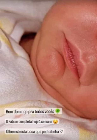 A ex-concorrente do “Big Brother” partilhou uma fotografia na qual se pode ver parte do rosto do bebé e, na legenda, escreveu: “Bom domingo para todos. O Fabian completa, hoje, uma semana.”