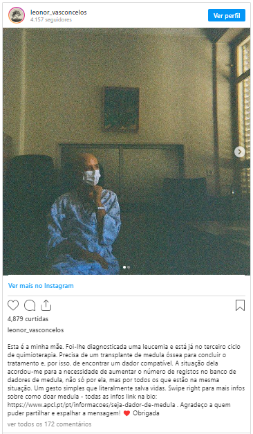 “A situação dela acordou-me para a necessidade de aumentar o número de registos no banco de dadores de medula, não só por ela, mas por todos os que estão na mesma situação. Um gesto simples que literalmente salva vidas. Agradeço a quem puder partilhar e espalhar a mensagem! Obrigada“, acrescentou.