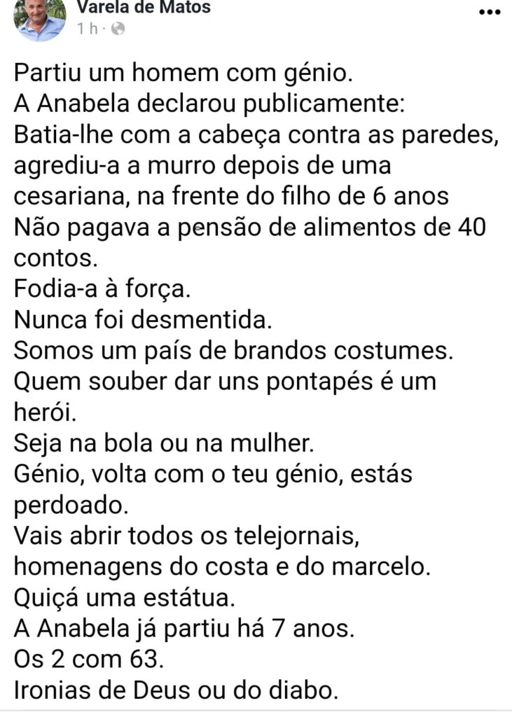 Hoje no dia em que o “Pequeno génio” desaparece também aos 63 anos, a polémica volta a ser relembrada numa publicação do advogado Varela de Matos: