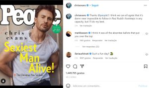 No seu Instagram, o ator começa por agradecer à People e em tom de brincadeira escreve que é “quase impossível seguir os passos de Paul Rudd (eleito o mais sexy de 2021)”. Ainda assim, e por via das dúvidas, Chris Evans, 41 anos, diz que fará “o seu melhor”.