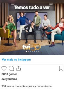 “A TVI venceu mais dias do que a concorrência no mês de março. Foram 15 face aos 14 da SIC e 2 da RTP1” diz a diretora de entretenimento e ficção da estação de Queluz de Baixo e explica detalhadamente;