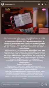 A especialista apontou: “Hoje no desfile, que pensou que ia passar fez o que mostro neste vídeo: escreveu “OPRESSÃO” enquanto desfilavam o Nelson e a Sampaio. Conseguiu com tanta insistência que a escutassem no confessionário. É pouco, muito pouco”.