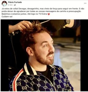 Flávio Furtado atualizou os seguidores, esta segunda-feira, e referiu que vai regressar ao “TVI Extra”, esta noite.