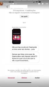 Não tardou muito tempo até à comentadora receber várias ameaças: “Não ponhas os pés em Freamunde se tens amor aos dentes… puta. Pensas que falas como queres de Freamunde e sais impune cabra?! Atreve-te a pôr cá os pés que tu vês o que te acontece…”.