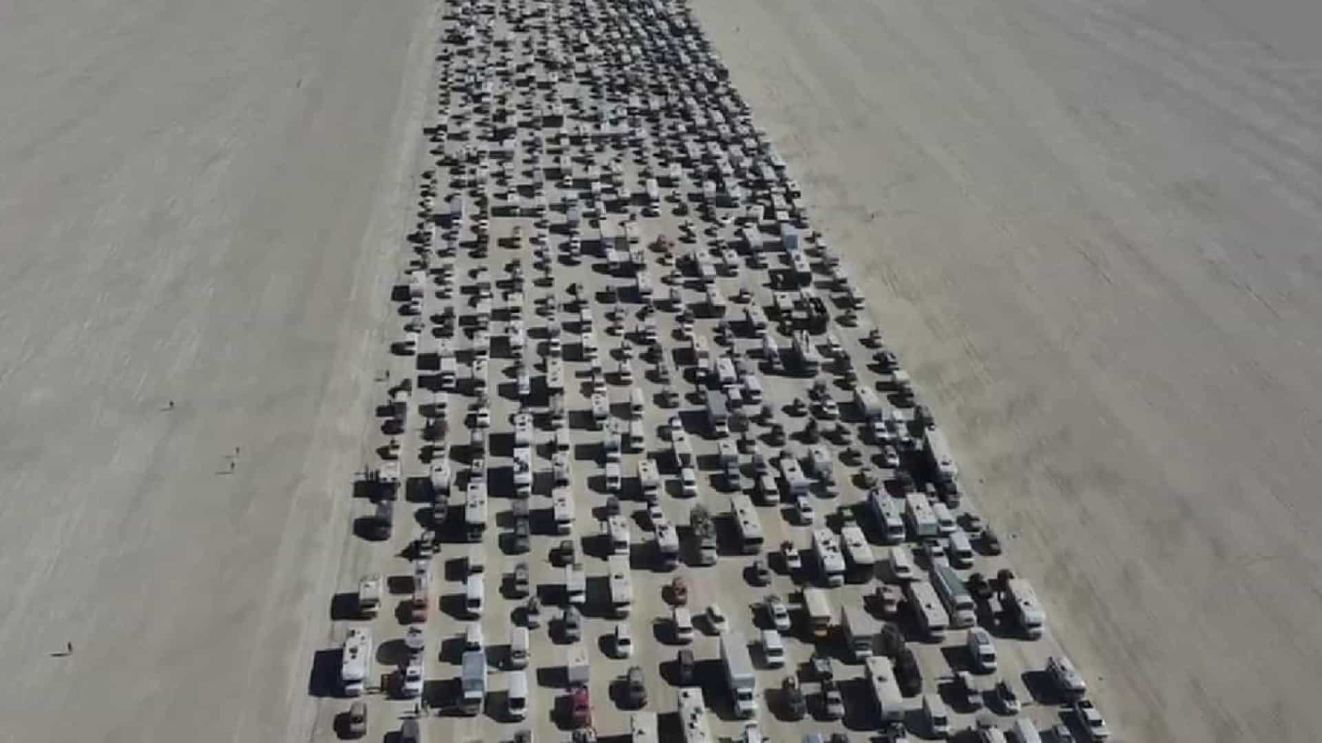 As imagens são impressionantes, no Festival Burning Man, fila com 8 horas.