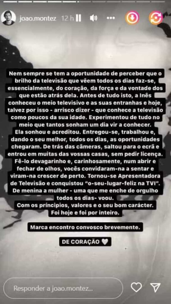 Ao fim de seis anos na TVI, Inês Gutierrez, revela estar de saída da TVI e o namorado, João Montez decidiu comentar a saída da atriz da TVI.