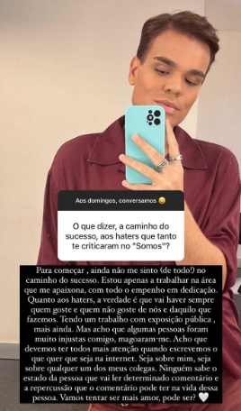 Durante uma sessão de perguntas e respostas com os fãs, no Instagram, Zé Lopes foi questionado por um seguidor sobre “o que dizer, a caminho do sucesso, aos haters” que o criticaram aquando da passagem do jovem pelo programa “Somos Portugal”, da TVI.