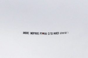Na faixa era possível ler “André inspiras Portugal. Vai com tudo – Março Costa”.