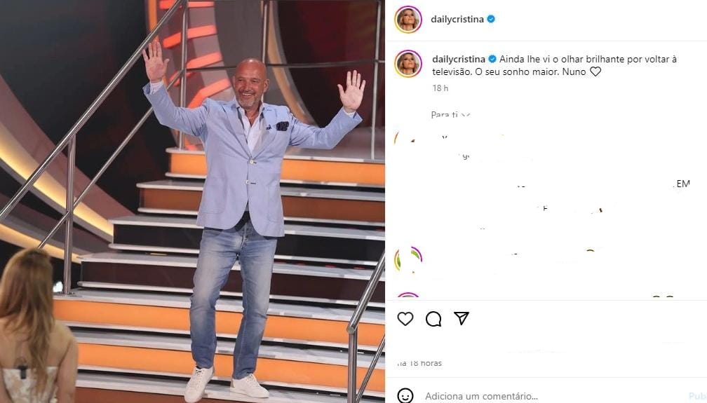 “Ainda lhe vi o olhar brilhante por voltar à televisão. O seu sonho maior. Nuno 🤍“, escreveu a apresentadora e diretora da TVI. Recorde-se que Nuno Graciano ainda foi comentador no “Dois às 10” e no “TVI Extra”, no último ano.