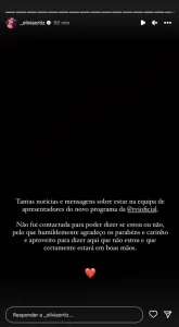 Olívia Ortiz: “Tantas notícias e mensagens sobre estar na equipa de apresentadores do novo programa da TVI”.