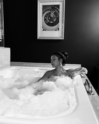 Ousada! Raquel Tavares mostra-se completamente nua durante banho de imersão