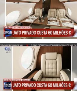 Depois de ter vendido o antigo avião, um Gulfstream G200, por 20 milhões, o craque português pagou 65 milhões de dólares, ou seja, cerca de 60 milhões de euros, pelo novo jato privado.