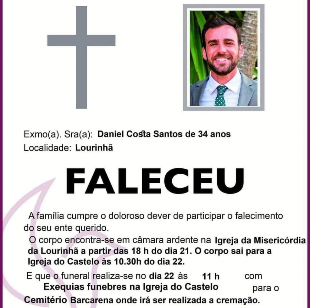 O médico Daniel Costa Santos de 34 anos natural da Lourinhã colocou termo à vida. A tragédia apanhou tudo e todos que estão neste momento mergulhados numa grande consternação. Por de trás do seu sorriso contagiante e da sempre amável disponibilidade, estaria uma depressão silenciosa, que o levou a este trágico desfecho. A Associação dos Jovens Médicos já manifestou o seu profundo pesar pelo falecimento bastante precoce do jovem médico, Daniel Costa Santos, esta quarta-feira, dia 19 de Outubro de 2022. Especialista em Cirurgia Geral, exercia atividade na Unidade Local de Saúde do Litoral Alentejano, sendo também médico tripulante na Viatura Médica de Emergência e Reanimação (VMER) do INEM. Conhecido pelo seu sorriso fácil e boa disposição, ” deixa-nos a todos, inclusive a muitos dos membros dos órgãos da AJOMED de quem era bastante próximo e amigo, um sentimento de enorme perda e eterna saudade.” Escreve a associação em comunicado enviado à revista jet7.