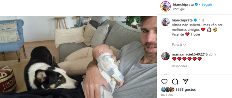 Esta segunda-feira (8), Pedro Bianchi Prata partilhou no Instagram mais uma fotografia do pequeno Vicente.