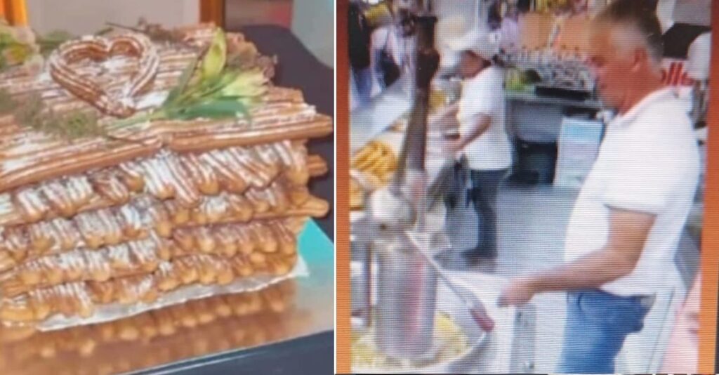 O Bolo de aniversário foi confecionado pelo tio de Marco Costa (na foto) numa rulote de farturas .