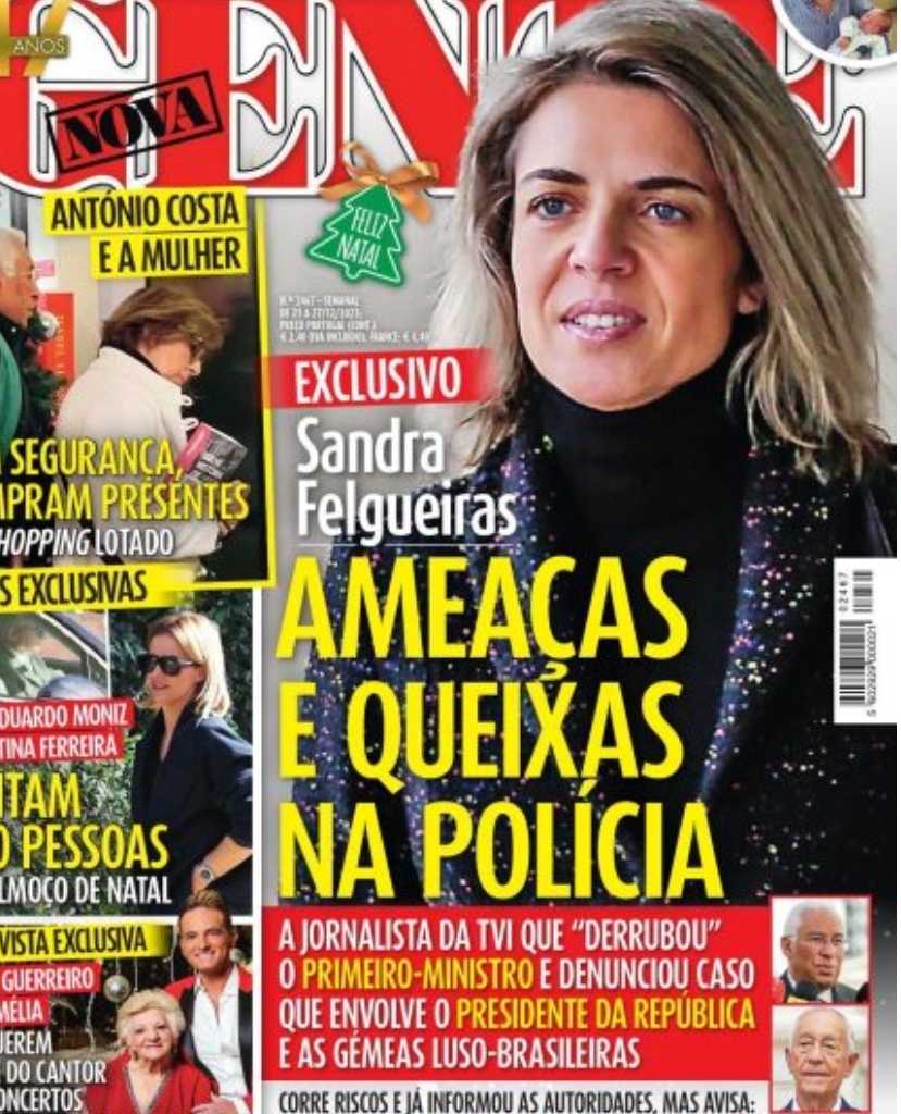 A a 7 de novembro, a suposta teia de influências no caso do hidrogénio e do lítio, denunciado pela mesma repórter em 2019 no extinto programa Sexta às 9, à época transmitido pela RTP1, culminava com o pedido de demissão de António Costa do cargo de primeiro-ministro. Desde então que Sandra Felgueiras tem recebido ameaças motivo que terá levado a alertar as autoridade. A REVISTA NOVA GENTE diz que as autoridades já estão avisadas e noticia em exclusivo: