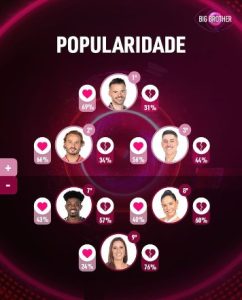 Com 69% dos votos positivos, Rúben Boa Nova mantém-se no primeiro lugar da sondagem, à frente de Miguel Vicente (66%) e Bernardo Ribeiro (56%).
