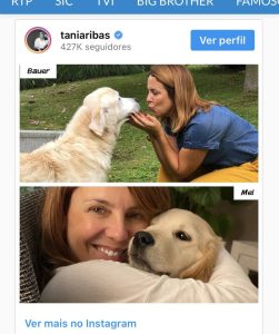 Foi por meio das redes sociais que Tânia Ribas de Oliveira não deixou passar o dia em vão. A apresentadora aparece nas fotografias ao lado dos seus animais de estimação com a legenda: “Hoje é Dia Mundial dos Animais! Aqui ficam duas fotografias com dois dos meus melhores amigos“.