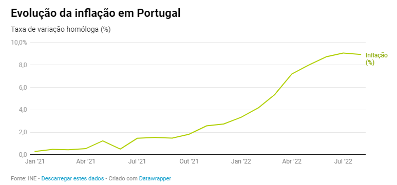 A subida generalizada dos preços está a sentir-se desde o início do ano, tendo-se intensificado depois de eclodir a guerra da Ucrânia. Desde março, o movimento ascendente da inflação tem vindo a acelerar, pressionando cada vez mais os bolsos das famílias, que, por sua vez, começam a fazer contas à vida e a refletir sobre os investimentos a médio e longo prazo. Em agosto, a inflação fixou-se nos 8,9%, estando nos níveis mais altos dos últimos 30 anos, refletindo-se num menor poder de compra.