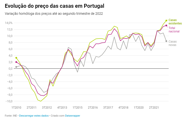 Com os preços das casas a subir trimestre após trimestre, torna-se mais difícil para as famílias comprar casa à medida das suas necessidades e, sobretudo, do seu orçamento. Note-se que no segundo trimestre, as casas ficaram 13,2% mais caras, sendo este o maior aumento alguma vez registado pelo INE.