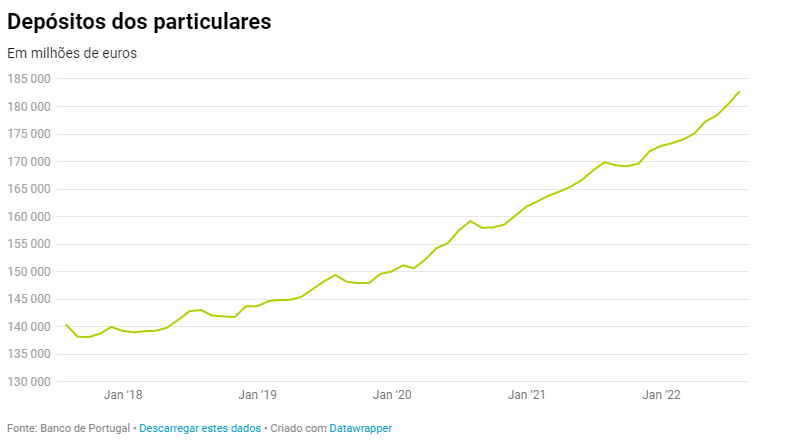 De acordo com os dados do Banco de Portugal, o valor dos depósitos dos particulares têm estado a subir mês após mês, tendo atingido os 182,7 mil milhões de euros em julho. E esta pode ser a forma mais segura de guardar o dinheiro em tempos de guerra, até porque com a subida das taxas de juro diretoras pelo Banco Central Europeu, os economistas sugerem que os depósitos a prazo passarão a dar um maior rendimento. De notar ainda que há outras formas de proteger as poupanças neste contexto de alta inflação.